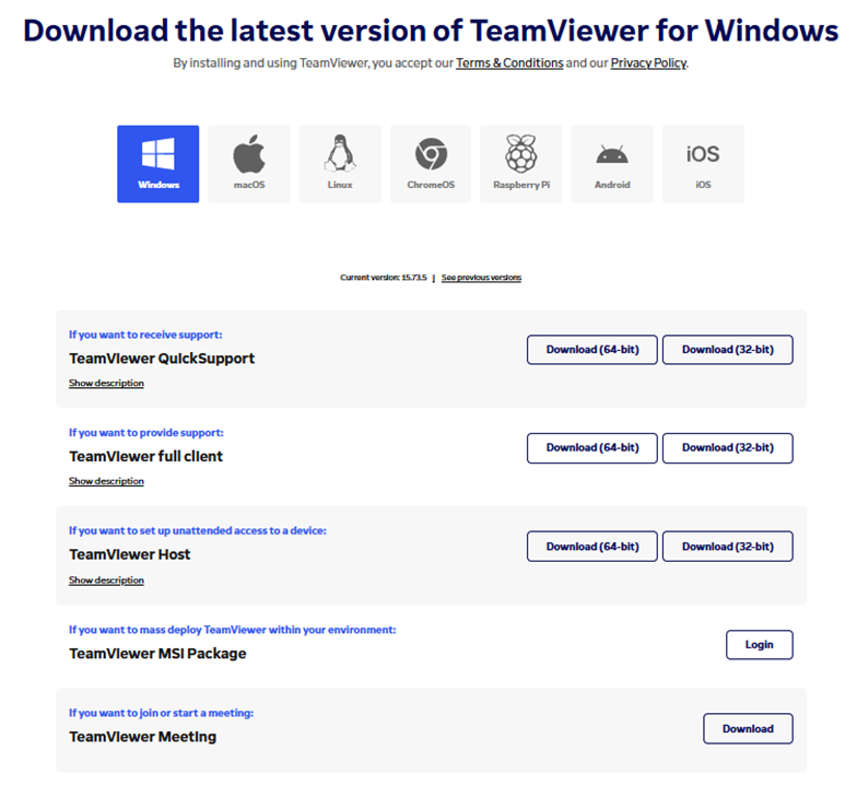 Langkah pertama, buka halaman resmi TeamViewer dan unduh aplikasinya sesuai kebutuhan.