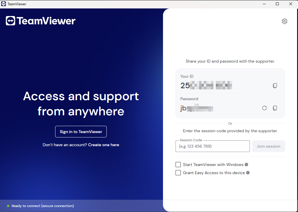 Dengan menggunakan ID dan password, teknisi dapat langsung terhubung ke komputer user dalam hitungan detik. Sebelum memulai remote support dengan TeamViewer, pastikan beberapa hal berikut: