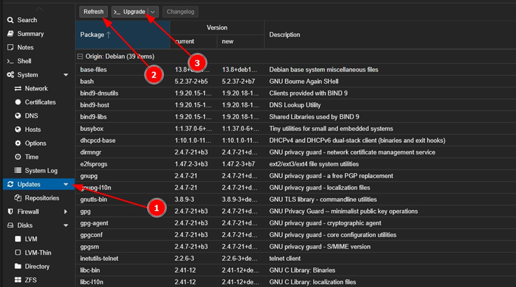 Buka terminal Proxmox dan jalankan perintah di CLI: #apt-get update && apt-get upgrade -y.