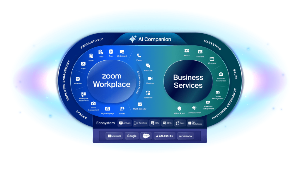 • Zoom Phone & Zoom Rooms: solusi telepon cloud dan ruang konferensi fisik virtual.